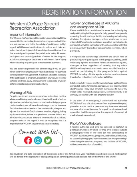 REGISTER ONLINE AT WWW.WDSRA.COM 41
