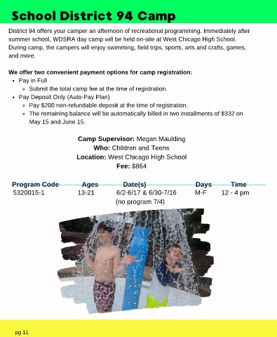 summer school, WDSRA day camp will be held on-site at West Chicago High School.