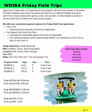 Spend your Fridays with us! Registering for this program will enroll your camper in all weeks