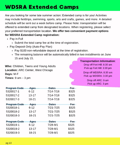 for WDSRA Extended Camp registration: