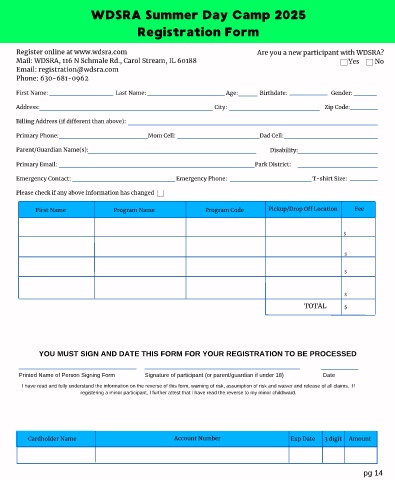 Mail: WDSRA, 116 N Schmale Rd., Carol Stream, IL 60188 Yes No