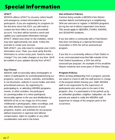 WDSRA utilizes ePACT to securely collect health Families living outside a WDSRA Park District