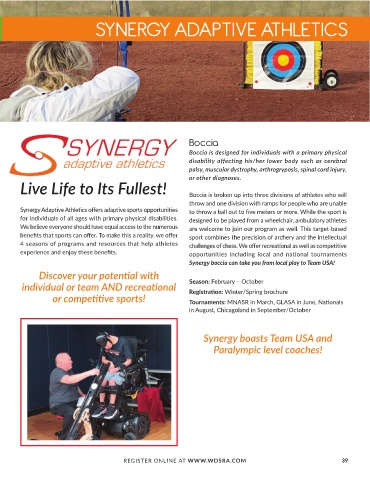 Synergy Adaptive Athletics offers adaptive sports opportunities to throw a ball out to five meters or more. While the sport is