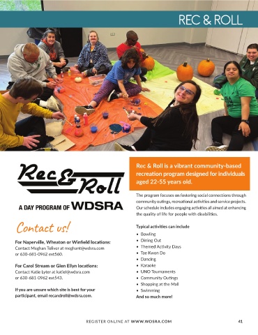 Contact Meghan Toliver at meghant@wdsra.com • Themed Activity Days